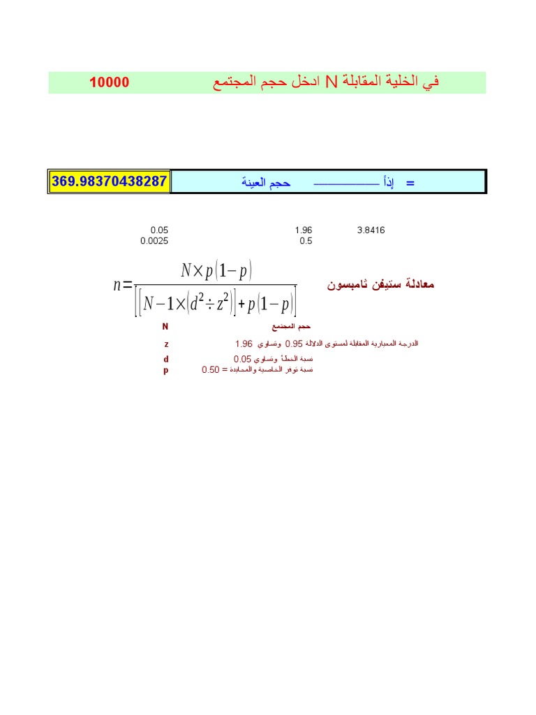 معادلة ثامبسون. حساب حجم العينة باستخدام معادلة ستيفن ثامبسون steven k. صندوق معادلة الضرائب, معادلة الرتب, معادلة الضغط.