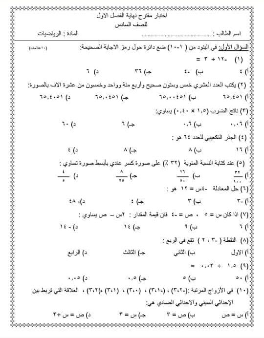 تجميع نماذج أسئلة اختبارات الفصل الدراسي الأول للمرحلة المتوسط والمرحلة الثانوية لجميع المواد الدراسية هذا الموضوع سوف نطرح فيه ان شاء الله نماذج أسئلة اختبارات الفصل الدراسي الأول للمرحلتين. صحيحة عند العدد الطبيعي k وهي تعتبر الخطوة رقم 1، 2. نموذج من اسئلة الاختبار : اختبار اعداد موجهة.pdf عرض تنزيل.
