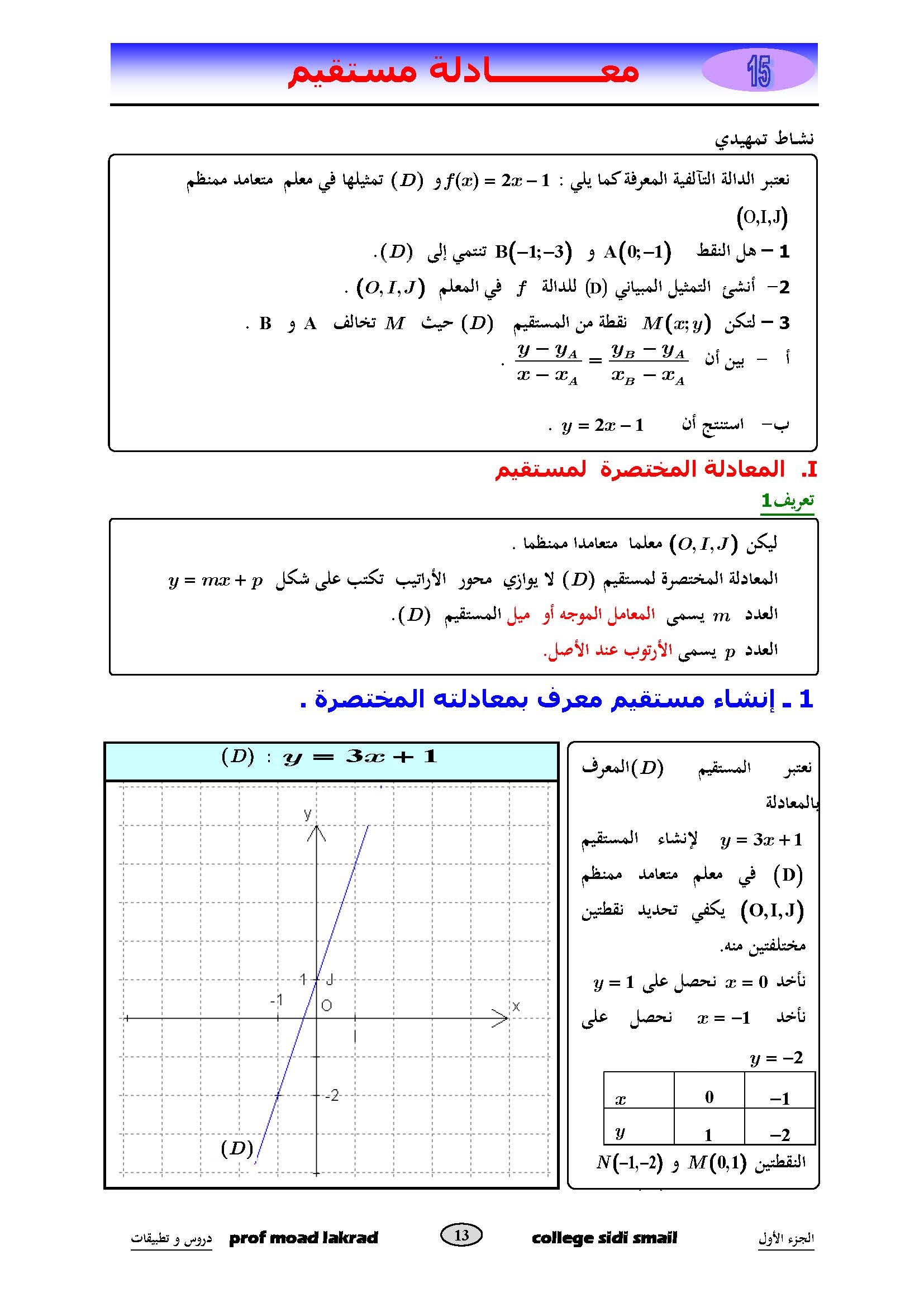 معادلة مستقيم في جميع الحالات للسنة الأولى ثانوي أقوى مراجعة للاختبار الثاني.