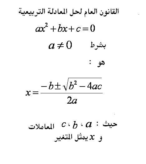 قانون حل معادلة من الدرجة الثالثة. لا توجد معادلات متعددة الحدود من الدرجة الثالثة لا يمكن تحليلها على نطاق الأعداد الحقيقية، وذلك لأن كل مكعب لا بد أن يوجد له جذر حقيقي. حل معادلات الدرجة الثانية في متغير واحد بطريقة القانون العام.