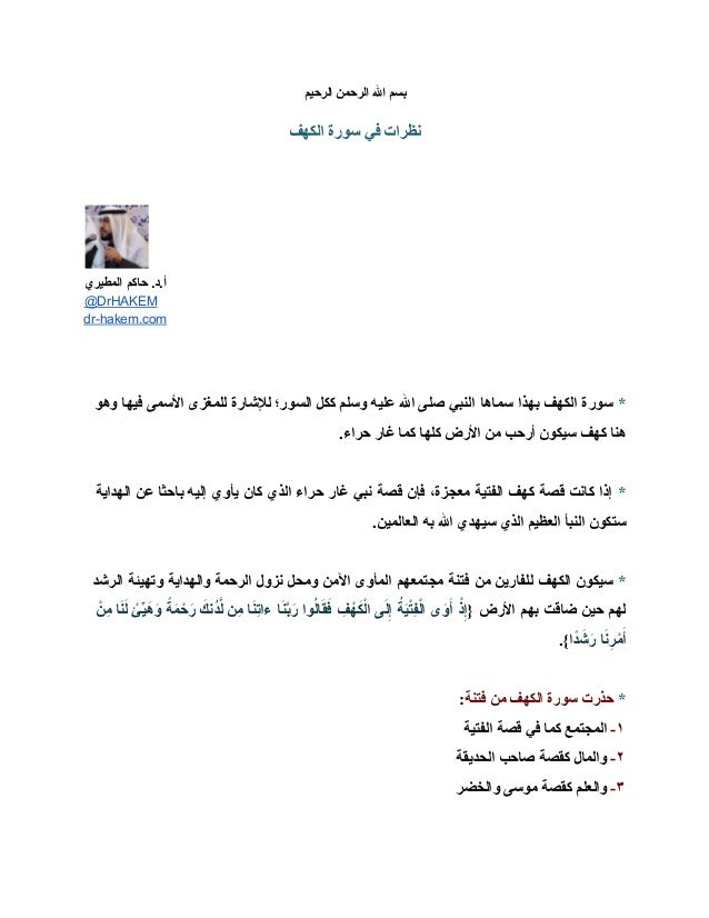 سورة الكهف تعمّق الإيمان وإن كان أصحاب الإيمان ليس عندهم الأسباب، ليس في أيديهم الدنيا ولذلك جاءت سورة الكهف تقول (الْمَالُ وَالْبَنُونَ زِينَةُ الْحَيَاةِ الدُّنْيَا (46)) كل هذا عَرَض زائل لكن الحقيقة الباقية والمستقرة الثابتة في الوجود والكون والآخرة الإيمان وما يمتّ إلى الإيمان. اسئلة عامة وأجابتها 2021 اسئلة ممتعة متنوعة للمسابقات مع الاجابة مفيدة جدا سهلة وصعبة للكبار والصغار. Home » apps » entertainment » سورة الكهف للعديد من القراء. سورة الكهف ـ هزاع البلوشيسورة الكهف كاملة بصوت القارئ الشيخ هزاع البلوشي مكتوبة بحروف كبيرةتلاوه جدا تريح الاعصاب وتهدا النفسورد في فضل قراءة سورة الكهف يوم.