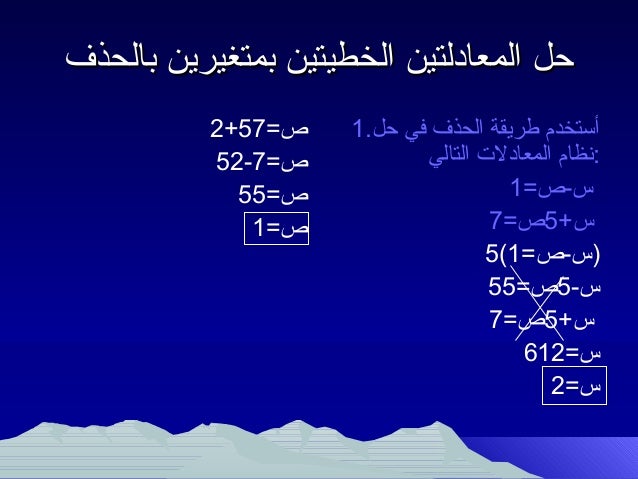 حل معادلة ص=٢س+١. فأجبي عما يأتى عددان مجموعهما هو 35 والفرق بينهما هو 11 فما هما؟ التهيئة حل نظام من معادلتين خطيتين بيانيا حل نظام من معادلتين خطيتين. في ورقة التدريب هذه، سوف نتدرَّب على إيجاد أزواج الأعداد لحل معادلات في مجهولَيْن، وسرد جميع الأزواج الممكنة.