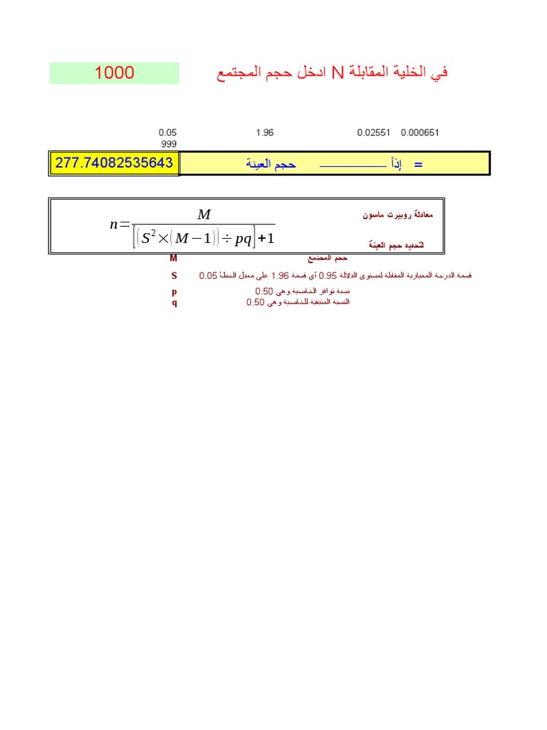 معادلة ستيفن ثامبسون. نسخة من طريقة حساب حجم العينة بتطبيق معادلة روبرت ماسون.xls. حساب حجم العينة باستخدام معادلة ستيفن ثامبسون steven k.