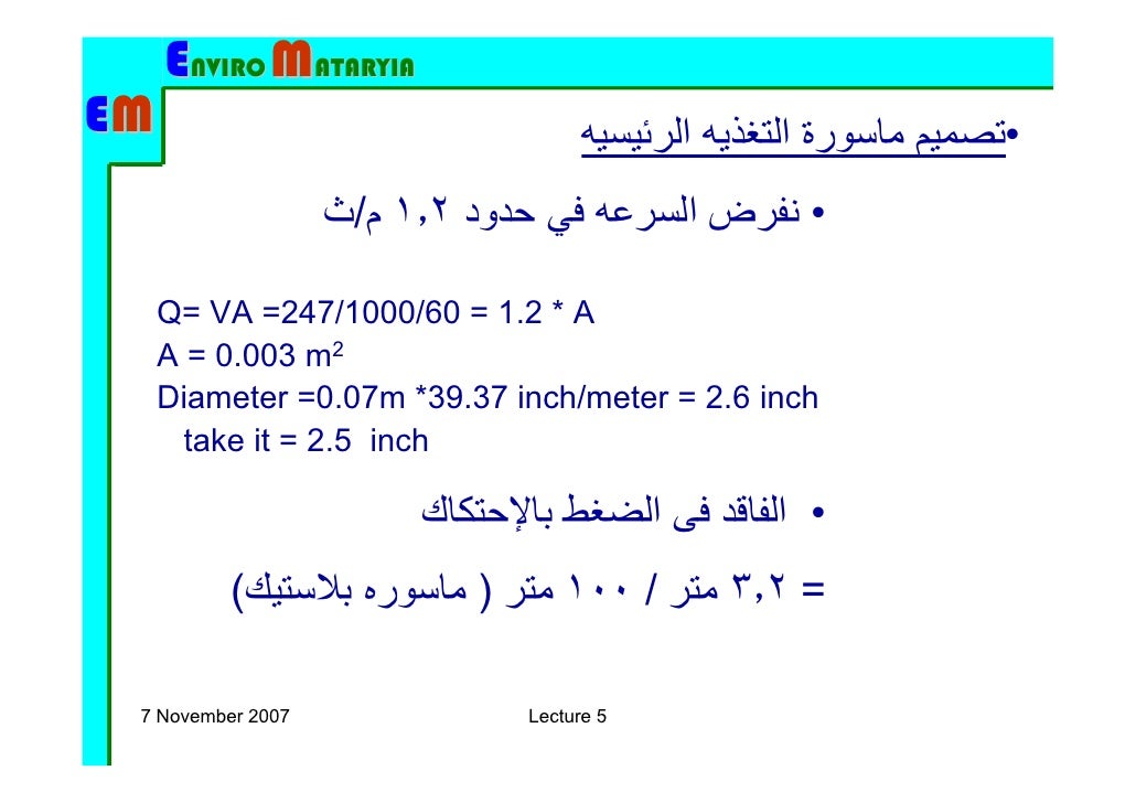 و تزداد قيمة فاقد الاحتكاك في الخط الفرعي نتيجة لطريقة تركيب الموزع على الخط و لتعديل قيمة الفاقد تستخدم إحدى المعادلتين و هما مشتقتين من معادلة هازن ــ ويليام.