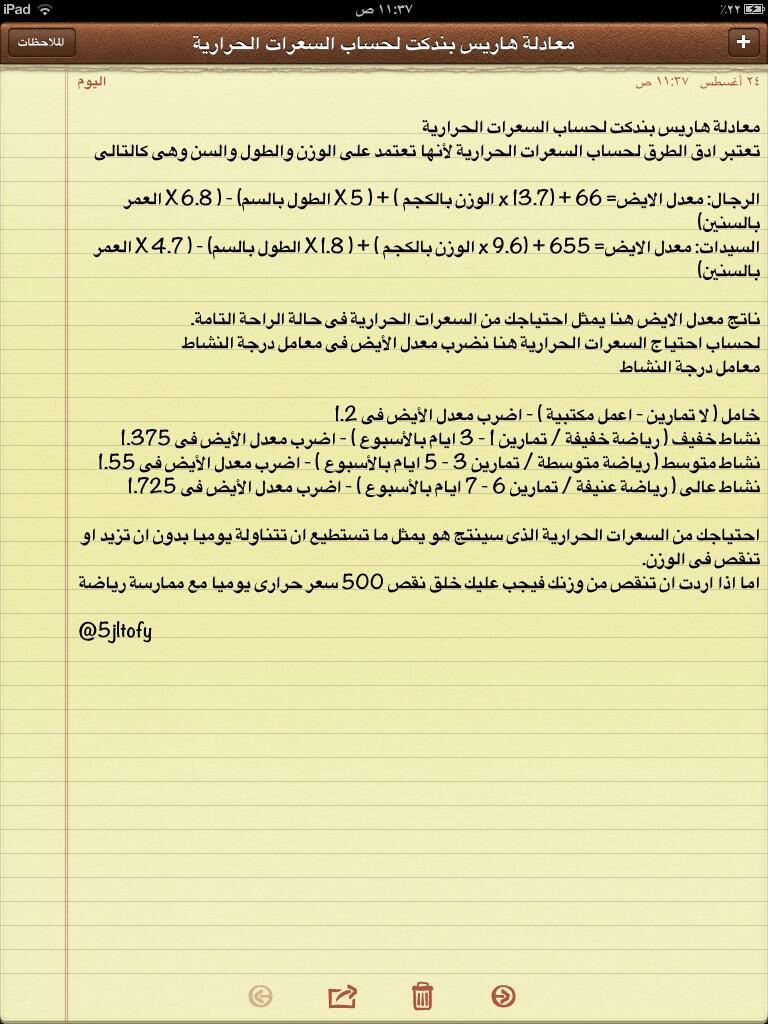 معادلة هاريس بندكت لحساب السعرات الحرارية.