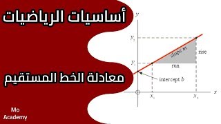 حالات خاصة لمعادلة الخط المستقيم. ويمكن ايجاد الميل والجزء المقطوع من المعادلة أ س + ب ص + جـ =0. حالات خاصة لمعادلة الخط المستقيم. يتم التعبير عن معادلة الخط المستقيم كالتالي y=mx+b حيث y هي قيمة إحداثيات محور الصادات عند نقطة معينة و m هو ميل الخط المستقيم وx هي قيمة إحداثيات محور السينات عند نقطة معينة بينما b هي الجزء المقطوع من محور الصادات.